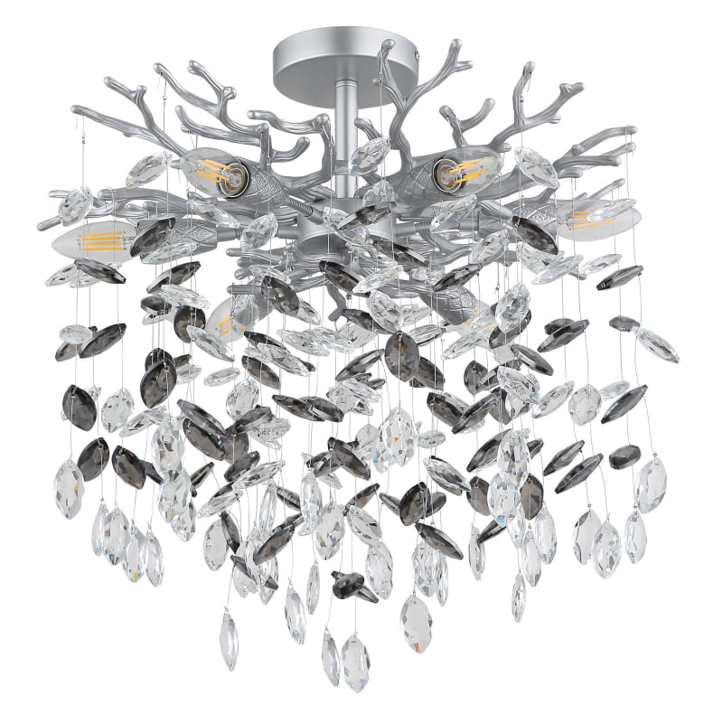 Laelamp QUEENA-GL-64138DS, Austria, Metallist hõbedane matt, klaaskristallid suitsuvärvi, läbipaistev, ø: 500 mm, K: 560 mm,  6x E14 40W 230V (ei ole komplektis). Tarneaeg 14-21 päeva.