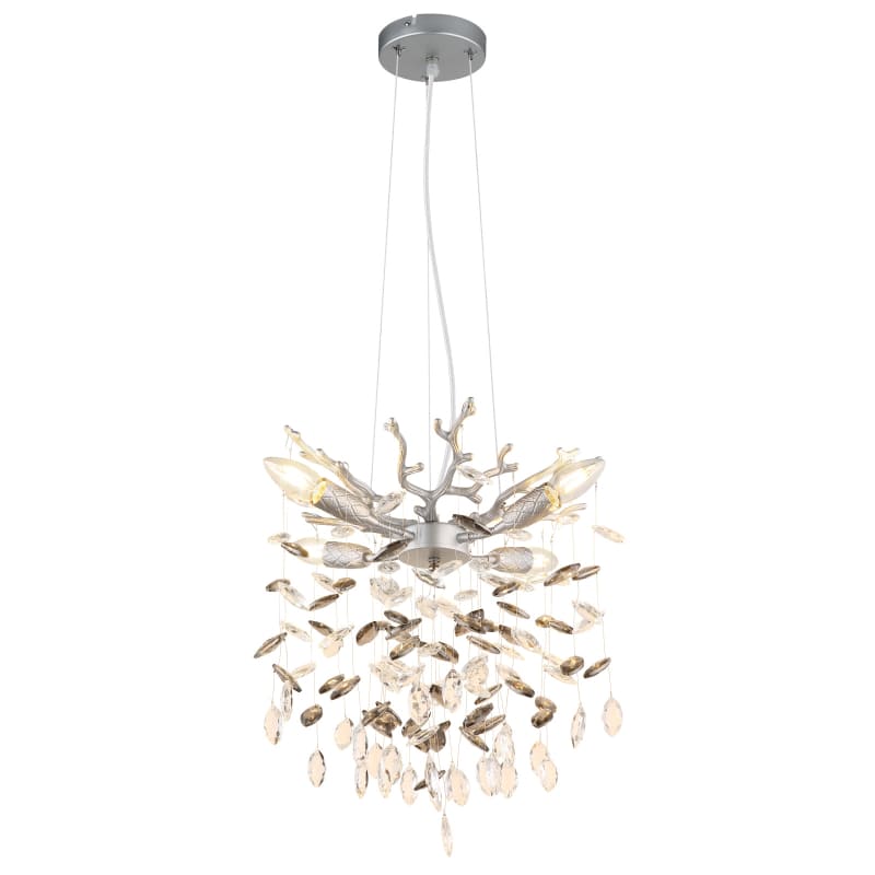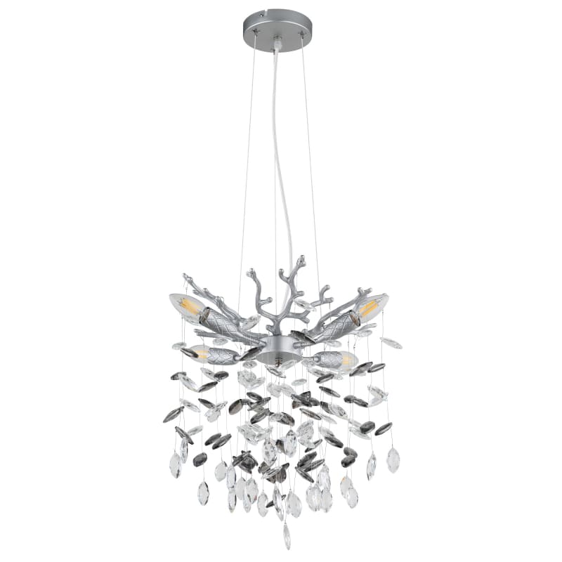 Lühter QUEENA-GL-64138HS, Austria, Metallist hõbedane matt, klaaskristallid suitsuvärvi,, läbipaistev, kõrgus vähendatav, ø: 400 mm, K: 1200 mm,  4x E14 40W 230V (ei ole komplektis). Tarneaeg 14-21 päeva.