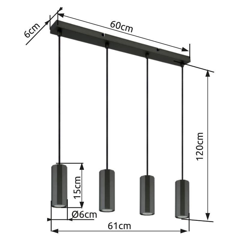 Ripplamp JAMES-GL-5791-4HB, GLOBO, Austria, 4 pirni GU10 25W, Kõrgus 120cm, Laius 6cm, Sügavus 61cm, IP20, Metall, Hall/Pronks. Tarneaeg 7-14 päeva.